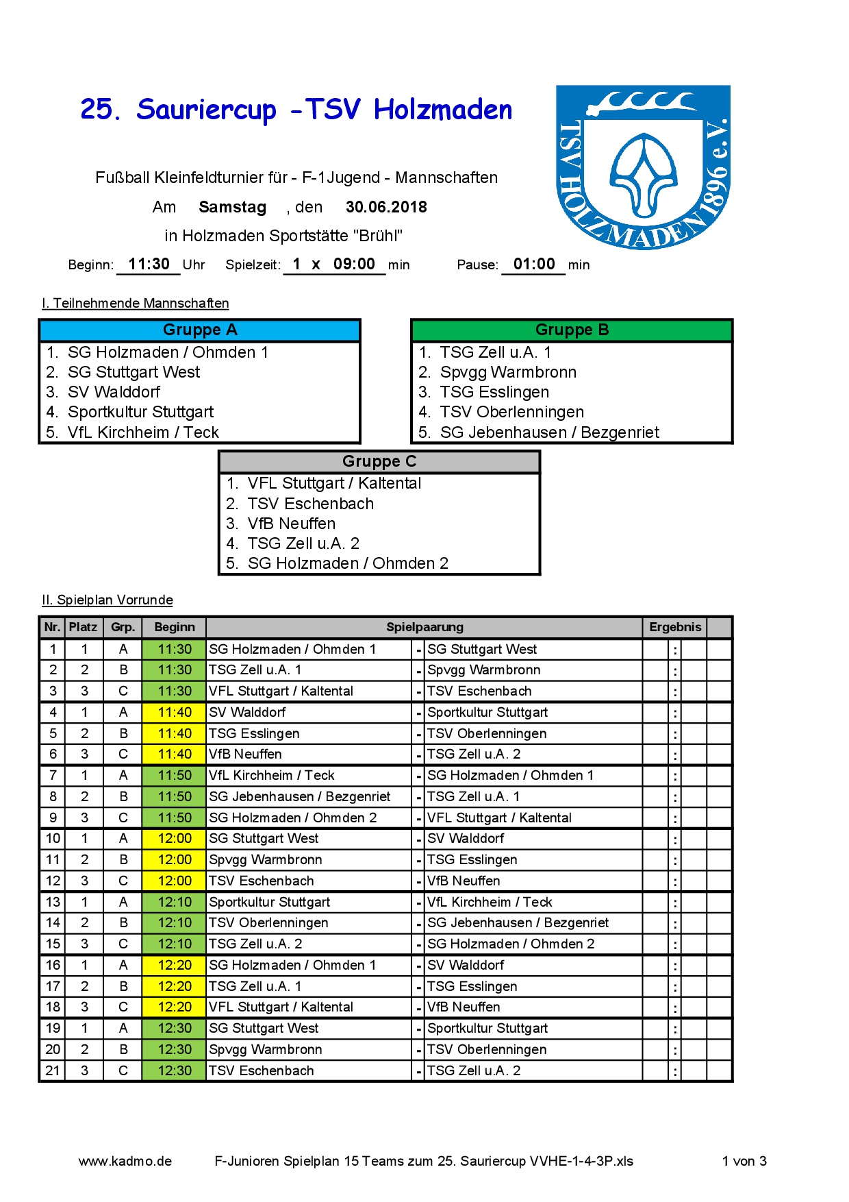 Jugendfußball - Jubiläumsturnier am 30. Juni und 01. Juli 2018